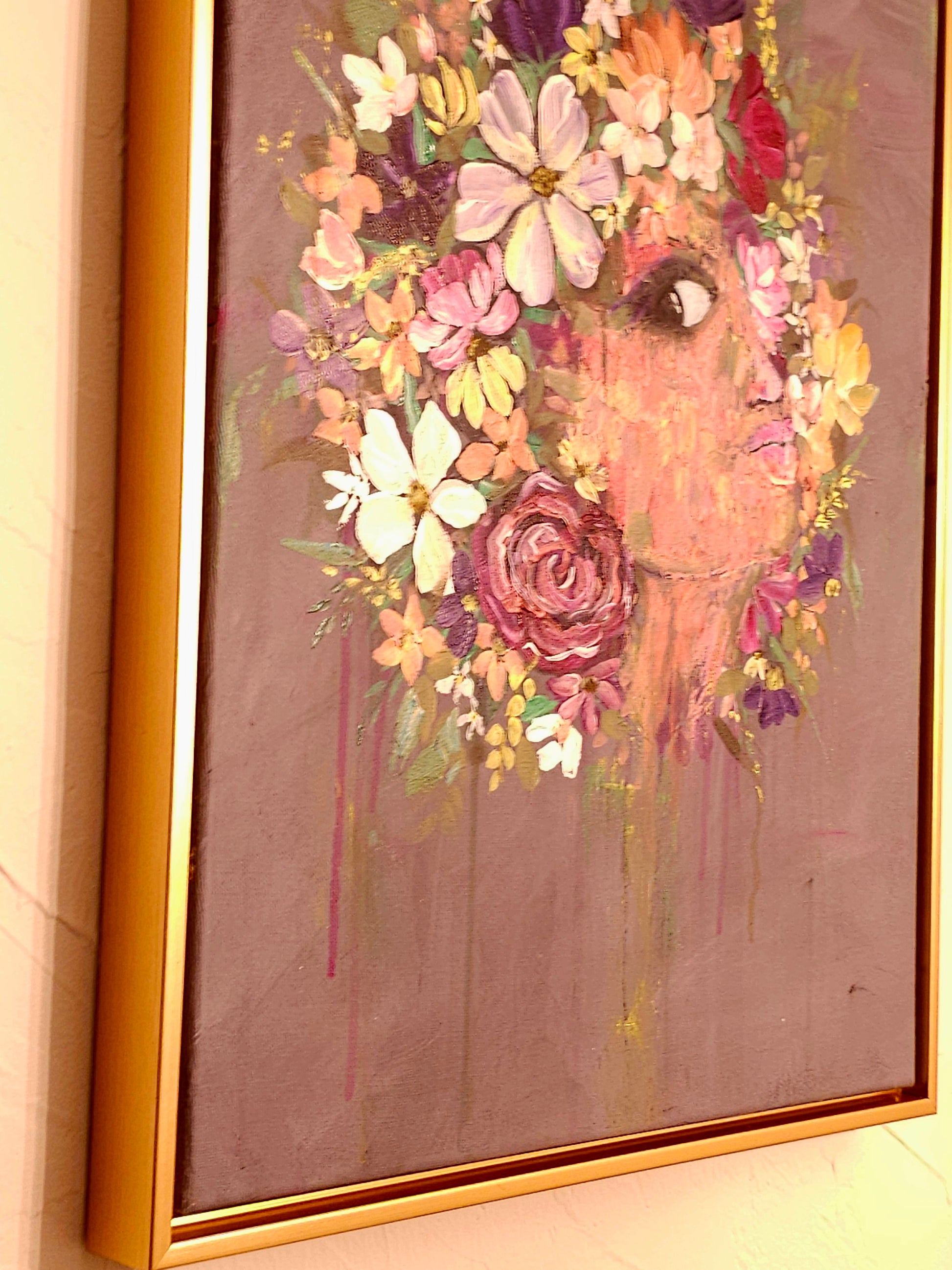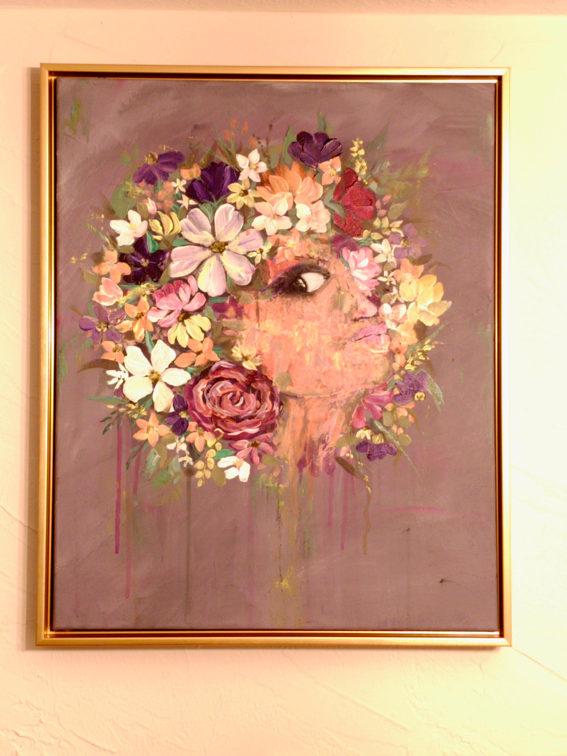 Acrylic on 3/8 canvas in stunning gold frame.